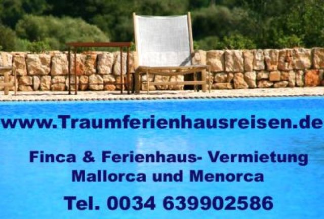 Wir vermieten und vermitteln Ihnen hochwertige , Ferienhäuser, Landhäuser, rustikale Fincas und preiswerte Ferienwohnungen auf Mallorca.Ferienhausvermittlung und Fincavermietung für Mallorca. Fincavermietung Mallorca Traumferienhausreisen ist Anbieter für die private Vermittlung und Vermietung von Fincas und Ferienhäuser auf Mallorca. Auch private Ferienwohnungen und Apartments findet man im großen Unterkunftsangebot. Mieten Sie Ihre Ferienunterkunft für ihreFerien oder Urlaub auf Mallorca.Unterhttp:/ / www.Traumferienhausreisen.deTel. 0034 639902586